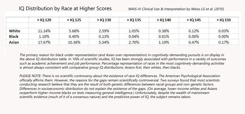 Wnioski: murzyni nie mają możliwości adekwatnej (13%) reprezentacji wymagającej wysokiego IQ